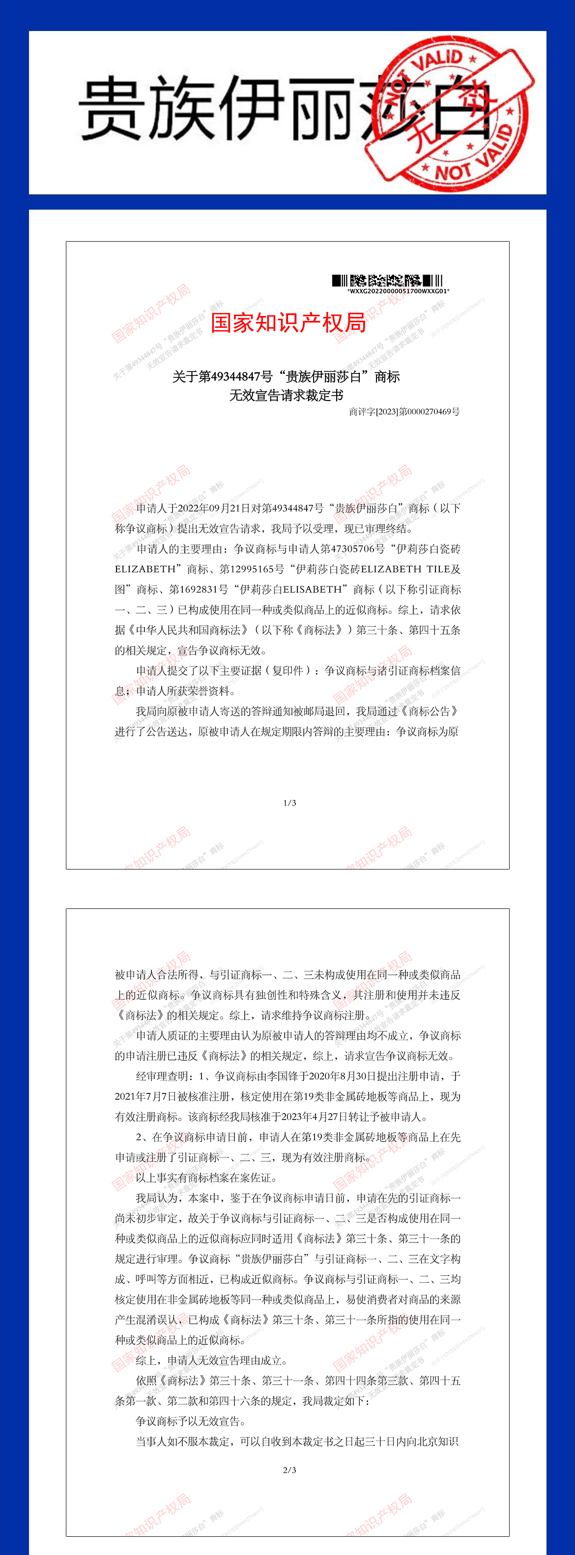 【維權(quán)打假】定了!伊莉莎白瓷磚重拳出擊打假無(wú)效商標(biāo)案勝訴!